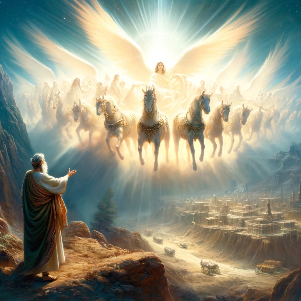 “He said, โ€˜Go and find where he is; I will send and seize him.โ€™ He was told, โ€˜He is in Dothan.โ€™ So he sent horses and chariots there and a great army; they came by night and surrounded the city. When an attendant of the man of God rose early in the morning and went out, an army with horses and chariots was all around the city. His servant said, โ€˜Alas, master! What shall we do?โ€™ He replied, โ€˜Do not be afraid, for there are more with us than there are with them.โ€™ Then Elisha prayed: โ€˜O Lord, please open his eyes that he may see.โ€™ So the Lord opened the eyes of the servant, and he saw; the mountain was full of horses and chariots of fire all around Elisha.”