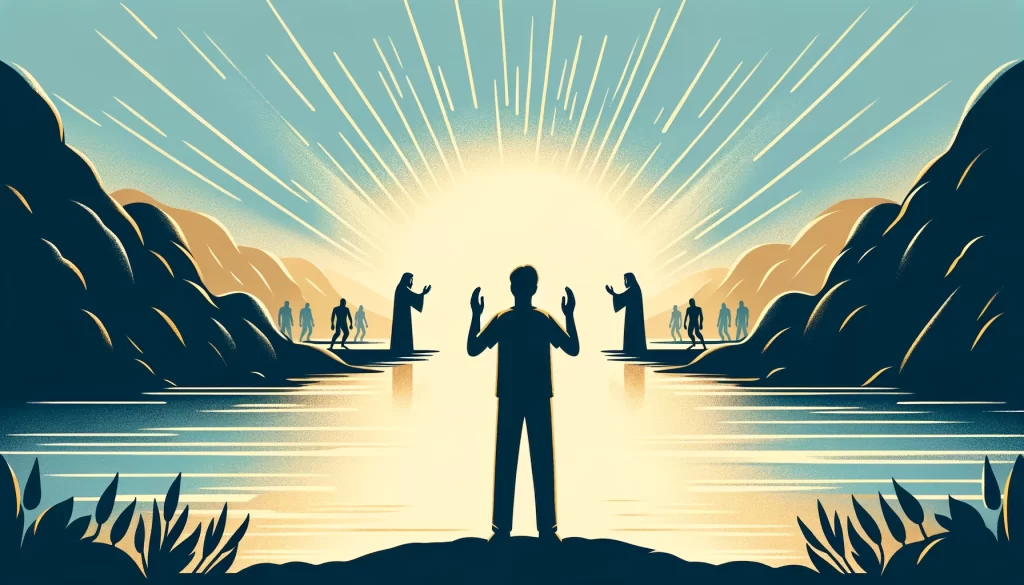 The angel of the Lord, depicted as offering comfort and protection, reminds us that God’s presence is with us even on the dry ground of our trials. We are called to be the salt of the earth, living stones built upon the foundation of Christ, and to trust in the faithful Creator who rests upon us. As the time cometh for the revelation of Jesus Christ, let us strive to emulate His love and patience, knowing that we are clothed in white robes of righteousness for His name’s sake.