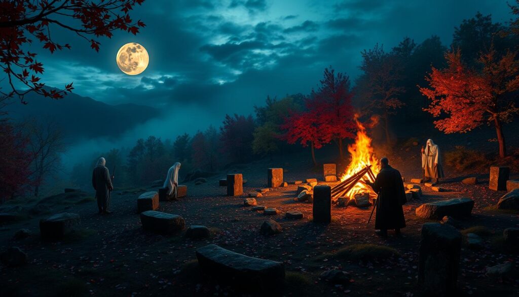 Halloween started as the Celtic festival of Samhain, marking the end of harvest season. It was believed the dead could return to Earth then. The holiday changed when All Saints’ Day was set on November 1st by Pope Gregory III. This made October 31st All Hallows’ Eve, mixing Christian beliefs with older traditions.