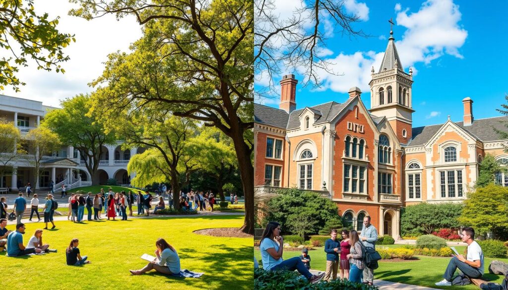 Now, think about campus life. Public universities have a secular, diverse environment. It’s great for students who want variety. Private colleges offer an environment close to their faith. They might have religious practices as part of their daily life.