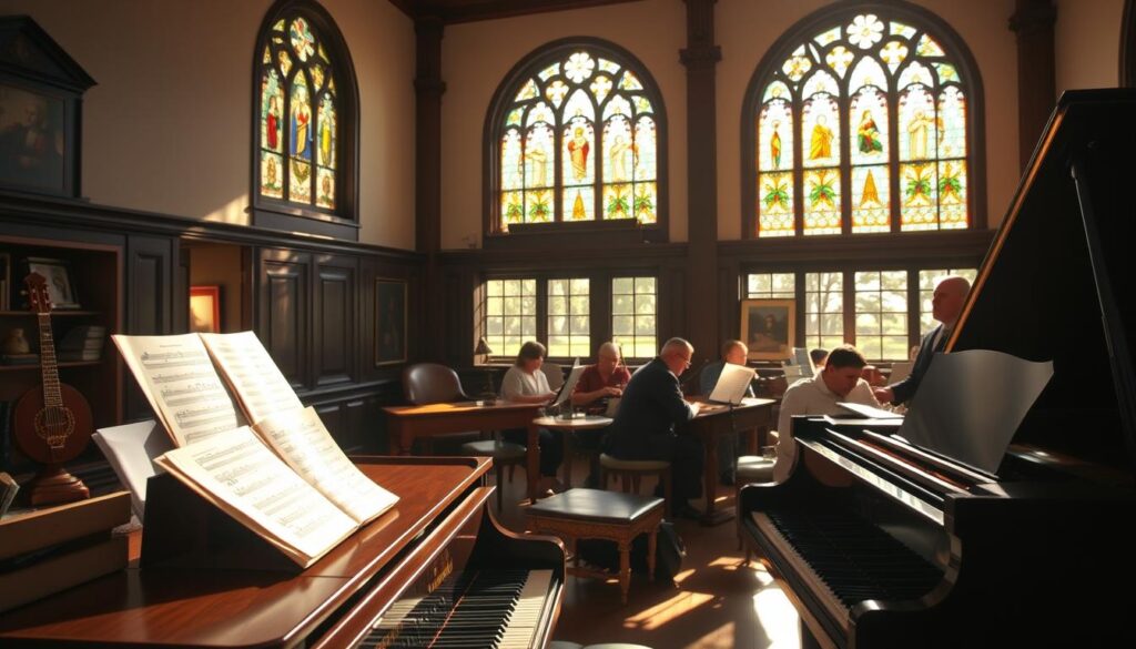Christian higher education institutions focus on music education with a big goal. They aim to prep students for a successful career in music. Schools like Colorado Christian University (CCU) and Southwest Baptist University (SBU) combine tough academics with faith-based learning. This gives music majors a well-rounded education that meets the music industry’s needs.