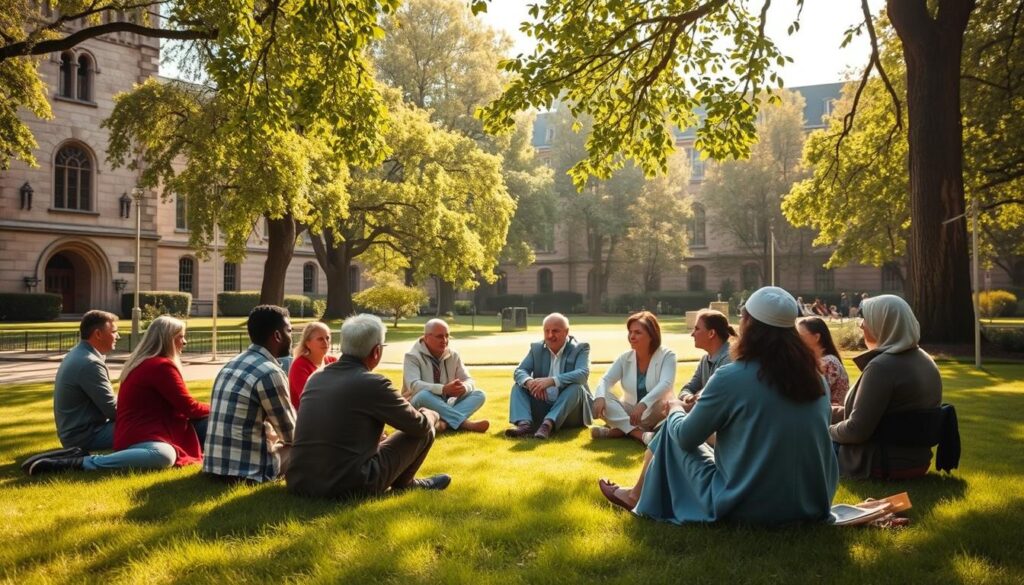 Across the U.S., Christian universities view encouraging interfaith conversations as vital. It’s not just academic; it deepens spiritual harmony. These schools see dialogue’s role in bringing different faith students together. They aim for spiritual growth and inclusivity. Campus ministry includes these talks, helping students learn about other faiths without feeling pressured to change.