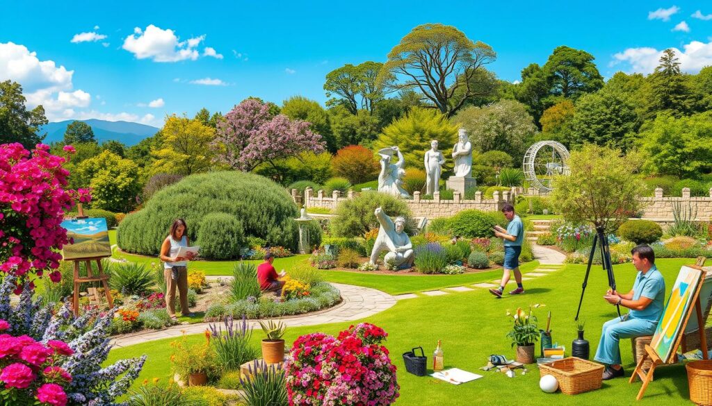 Art in gardens is more than just decoration. It blends function with beauty, where every part adds educational value. For instance, sculptures can start conversations and make people engage more with plants.