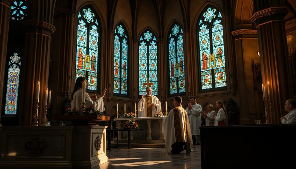 The Catholic Church sees two main types of priesthood. Each plays a special role in helping the Church. Knowing the difference between diocesan priesthood and religious priests matters a lot. It’s especially important for those thinking about becoming priests. This understanding shows the various ways priests can serve and helps people find their true calling.