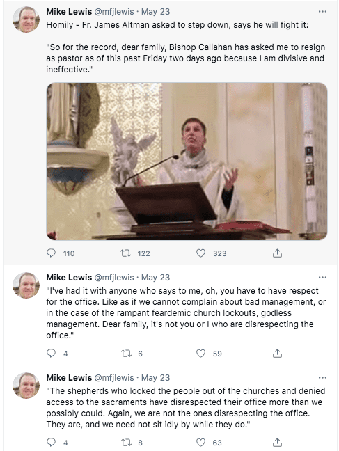 “I cannot picture that podium at St. James the Less Church without Fr. Altman,” one parishioner wrote. “Woe to you Bishop William Callahan and all you other wolves in shepherd’s clothing.”