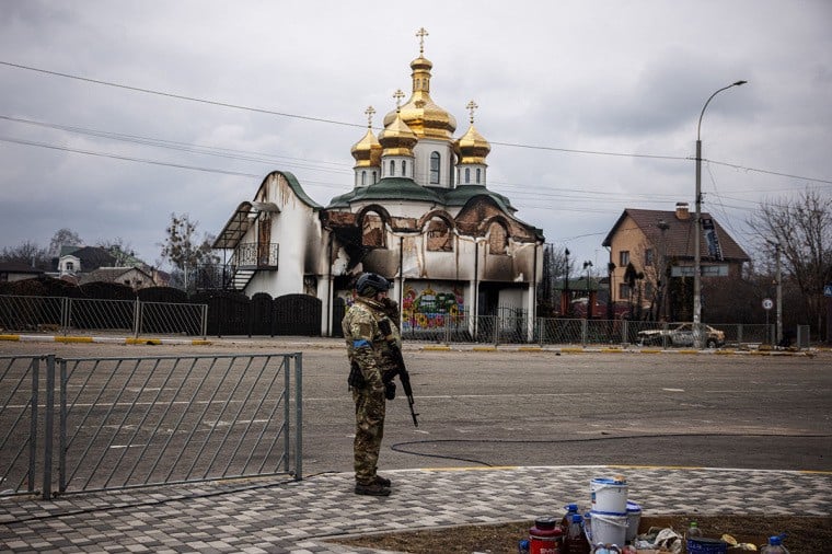 A nearly 600-year-old Orthodox Christian monastery eastern Ukraine that refugees were using was the target of a Russian airstrike on March 12.