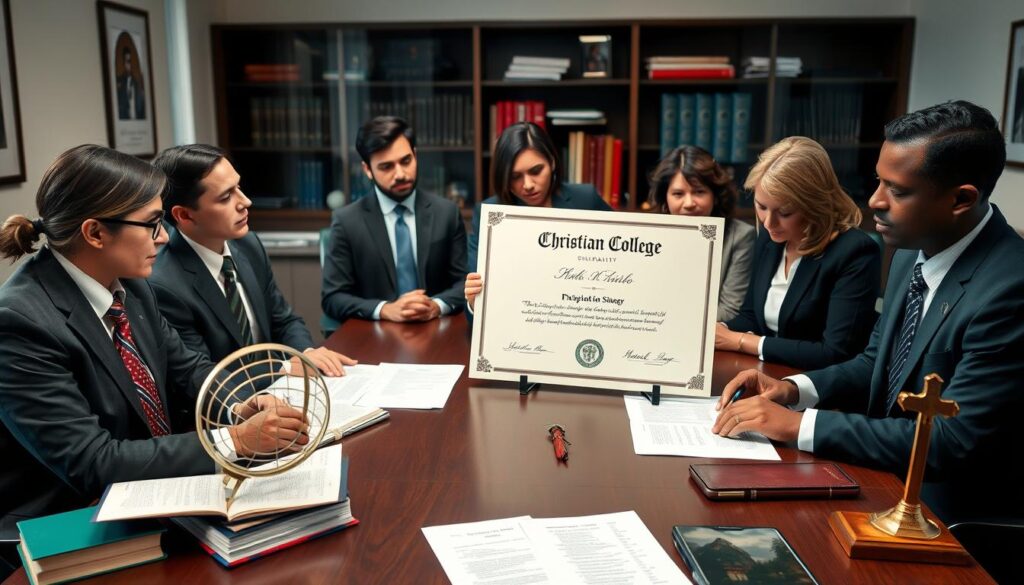 Schools like Wheaton College and Corban University stick to strict moral rules. Students agree to faith statements, setting clear community and personal behavior standards. This helps them stay moral in their careers. It meets the goals of Christian higher education job opportunities.