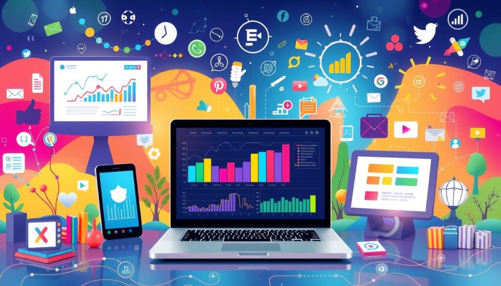Equally critical is ROI measurement. It proves how well marketing money is spent. Today, with tight budgets, knowing the real gains from ads is a must. This knowledge helps marketers fine-tune their efforts and justify costs.