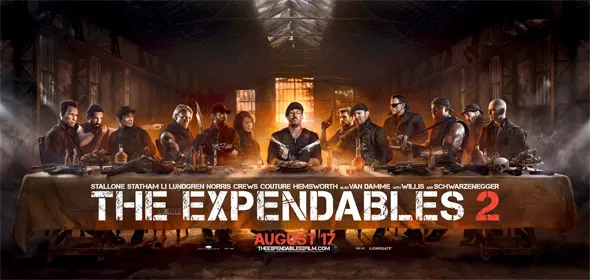The 2012 action movie The Expendables 2 had a Last Supper movie poster with the ensemble cast sitting at the table holding weapons.