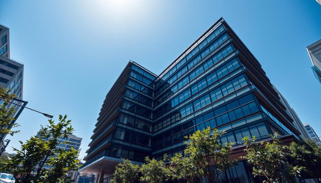 Exploring architectural photography is key for creating powerful images. Think of Julius Shulman’s work, which shows true craftsmanship. In this field, it’s all about capturing the beauty and precision of buildings. This means using specific camera settings. A slower shutter speed and low ISO levels help make the photos clear and sharp.