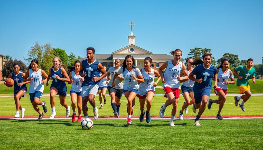 The National Christian College Athletic Association (NCCAA) began in 1968 in Canton, Ohio. It started with a focus on men’s basketball and a strong set of rules. Now, it’s in Greenville, South Carolina, with a big focus on Christian college athletics mission. Its growth has been about mixing Christian values with college sports. This way, sports events teach faith, ethics, and community spirit.